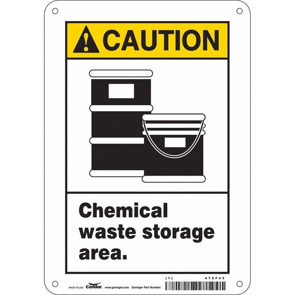 Safety Sign, Horizontal Rectangle, Number of Printed Sides 1, English, Sign Format ANSI/OSHA Format, Sign Legend Chemical Waste Storage Area., Sign Legend Background Color White, Sign Legend Style Symbol and Text