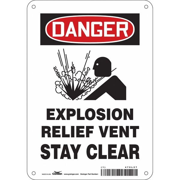 Safety Sign, Horizontal Rectangle, Number of Printed Sides 1, English, Sign Legend Explosion Relief Vent Stay Clear, Sign Legend Background Color White, Sign Legend Style Symbol and Text