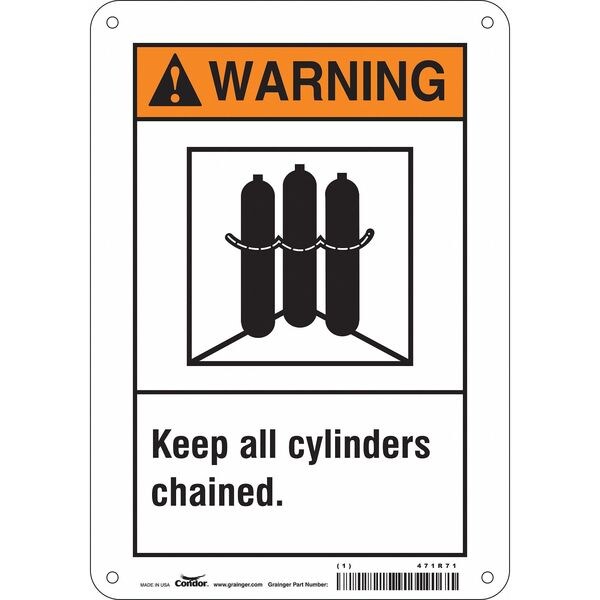 Safety Sign, Horizontal Rectangle, Number of Printed Sides 1, English, Sign Format ANSI/OSHA Format, Sign Legend Keep All Cylinders Chained., Sign Legend Background Color White, Sign Legend Style Symbol and Text