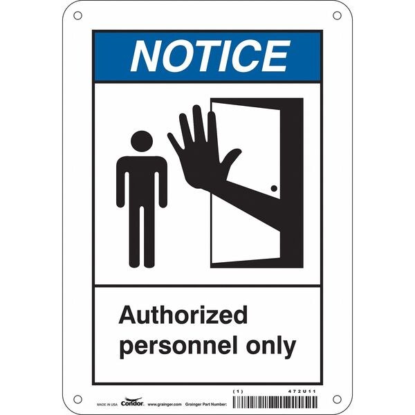 Safety Sign, Horizontal Rectangle, Number of Printed Sides 1, English, Sign Format ANSI/OSHA Format, Sign Legend Authorized Personnel Only, Sign Legend Background Color White, Sign Legend Style Symbol and Text