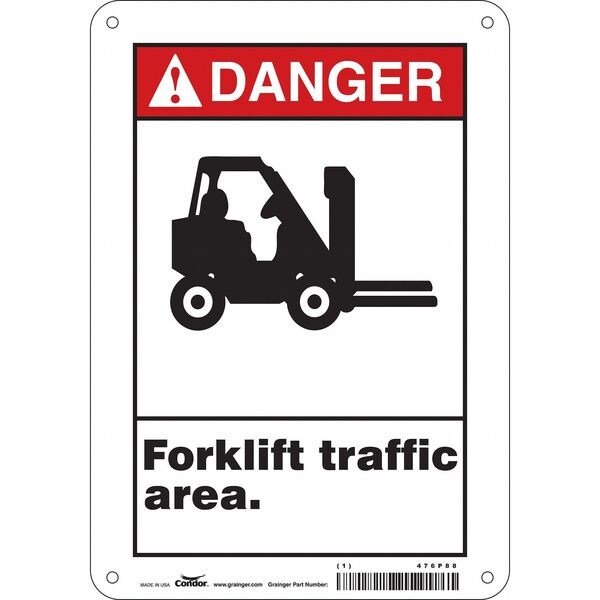 Safety Sign, Horizontal Rectangle, Number of Printed Sides 1, English, Sign Format ANSI/OSHA Format, Sign Legend Forklift Traffic Area., Sign Legend Background Color White, Sign Legend Style Symbol and Text