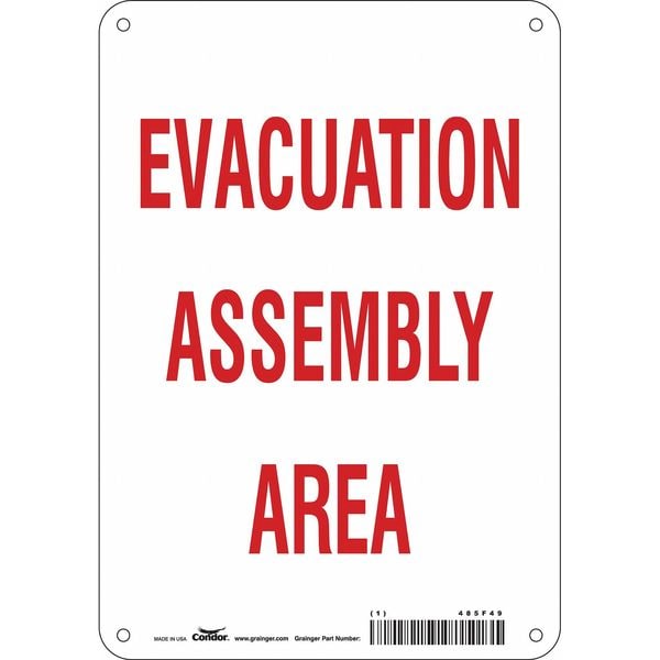 Safety Sign, Horizontal Rectangle, Number of Printed Sides 1, English, Sign Legend Evacuation Assembly Area, Sign Legend Background Color White, Sign Legend Style Text