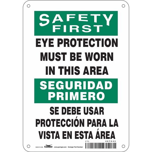 Safety Sign, Horizontal Rectangle, Number of Printed Sides 1, English, Spanish, Sign Format Traditional OSHA, Sign Legend Eye Protection Must Be Worn In This Area/Se Debe Usar Proteccion Para La Vista En Esta Area, Sign Legend Background Color White, Sign Legend Style Text