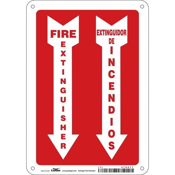 Safety Sign, Horizontal Rectangle, Number of Printed Sides 1, English, Spanish, Sign Legend Fire Extinguisher/Extinguidor De Incendios, Sign Legend Background Color Red; White, Sign Legend Style Symbol and Text