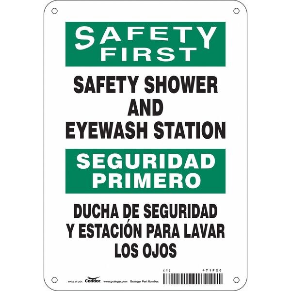 Safety Sign, Horizontal Rectangle, Number of Printed Sides 1, English, Spanish, Sign Legend Safety Shower And Eyewash Station/Ducha De Seguridad Y Estacion Para Lavar Los Ojos, Sign Legend Background Color White, Sign Legend Style Text