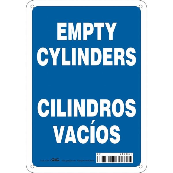 Safety Sign, Horizontal Rectangle, Number of Printed Sides 1, English, Spanish, Sign Format Other Format, Sign Legend Empty Cylinders/Cilindros Vacios, Sign Legend Background Color Blue, Sign Legend Style Text