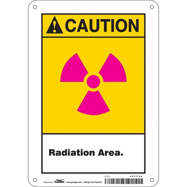 Safety Sign, Horizontal Rectangle, Number of Printed Sides 1, English, Sign Format ANSI/OSHA Format, Sign Legend Radiation Area., Sign Legend Background Color White, Sign Legend Style Symbol and Text
