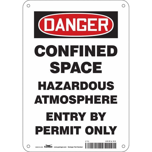 Safety Sign, Horizontal Rectangle, Number of Printed Sides 1, English, Sign Format Traditional OSHA, Sign Legend Confined Space Hazardous Atmosphere Entry By Permit Only, Sign Legend Background Color White, Sign Legend Style Text