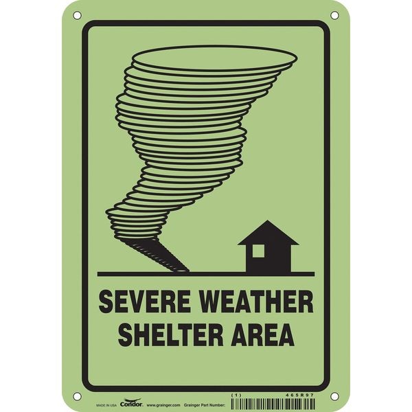 Safety Sign, Horizontal Rectangle, Number of Printed Sides 1, English, Sign Legend Severe Weather Shelter Area, Sign Legend Background Color White, Sign Legend Style Symbol and Text