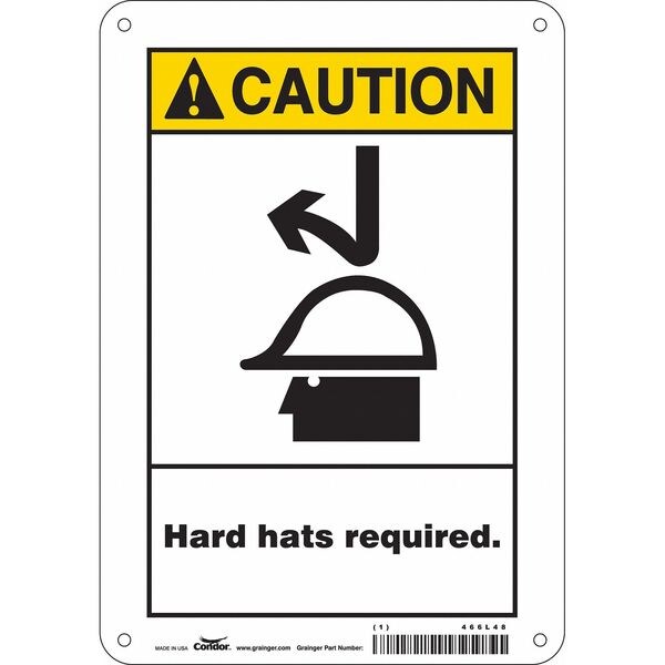 Safety Sign, Horizontal Rectangle, Number of Printed Sides 1, English, Sign Format ANSI/OSHA Format, Sign Legend Hard Hats Required., Sign Legend Background Color White, Sign Legend Style Symbol and Text