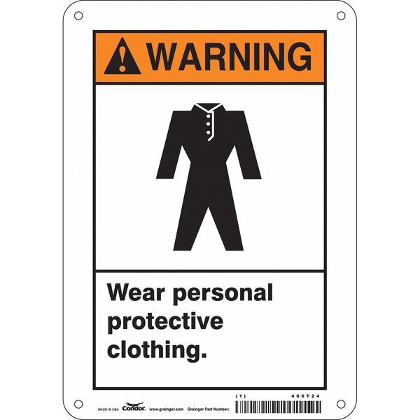 Safety Sign, Horizontal Rectangle, Number of Printed Sides 1, English, Sign Format ANSI/OSHA Format, Sign Legend Wear Personal Protective Clothing., Sign Legend Background Color White, Sign Legend Style Symbol and Text