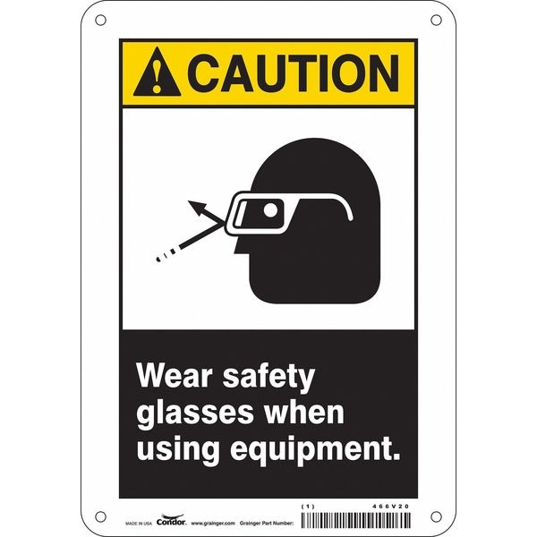 Safety Sign, Horizontal Rectangle, Number of Printed Sides 1, English, Sign Format ANSI/OSHA Format, Sign Legend Wear Safety Glasses When Using Equipment., Sign Legend Background Color Black, White, Sign Legend Style Symbol and Text
