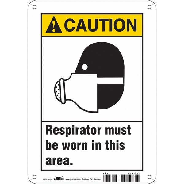 Safety Sign, Horizontal Rectangle, Number of Printed Sides 1, English, Sign Format ANSI/OSHA Format, Sign Legend Respirators Must Be Worn In This Area, Sign Legend Background Color White, Sign Legend Style Symbol and Text