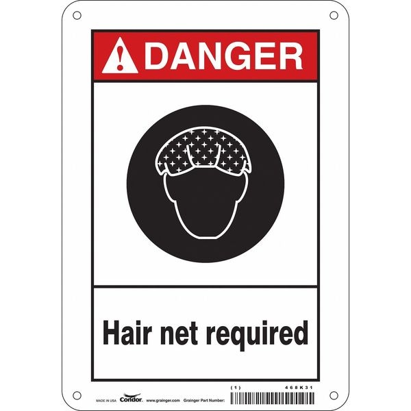 Safety Sign, Horizontal Rectangle, Number of Printed Sides 1, English, Sign Format ANSI/OSHA Format, Sign Legend Hair Net Required, Sign Legend Background Color White, Sign Legend Style Symbol and Text