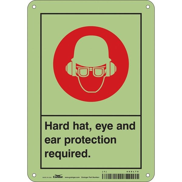 Safety Sign, Horizontal Rectangle, Number of Printed Sides 1, English, Sign Format Other Format, Sign Legend Hard Hat, Eye And Ear Protection Required., Sign Legend Background Color White, Sign Legend Style Symbol and Text