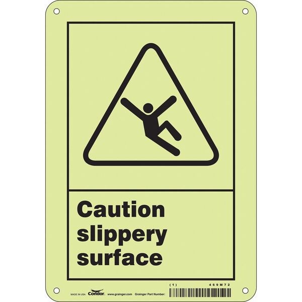 Safety Sign, Horizontal Rectangle, Number of Printed Sides 1, English, Sign Format Other Format, Sign Legend Caution Slippery Surface, Sign Legend Background Color White, Sign Legend Style Symbol and Text