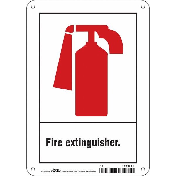Safety Sign, Horizontal Rectangle, Number of Printed Sides 1, English, Sign Format Other Format, Sign Legend Fire Extinguisher., Sign Legend Background Color White, Sign Legend Style Symbol and Text