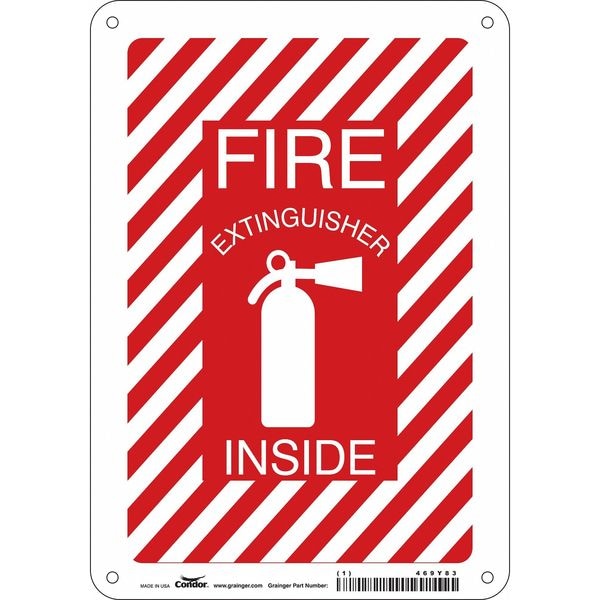 Safety Sign, Horizontal Rectangle, Number of Printed Sides 1, English, Sign Legend Fire Extinguisher Inside, Sign Legend Background Color Red, White, Sign Legend Style Symbol and Text