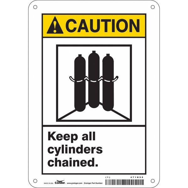 Safety Sign, Horizontal Rectangle, Number of Printed Sides 1, English, Sign Format ANSI/OSHA Format, Sign Legend Keep All Cylinders Chained., Sign Legend Background Color White, Sign Legend Style Symbol and Text