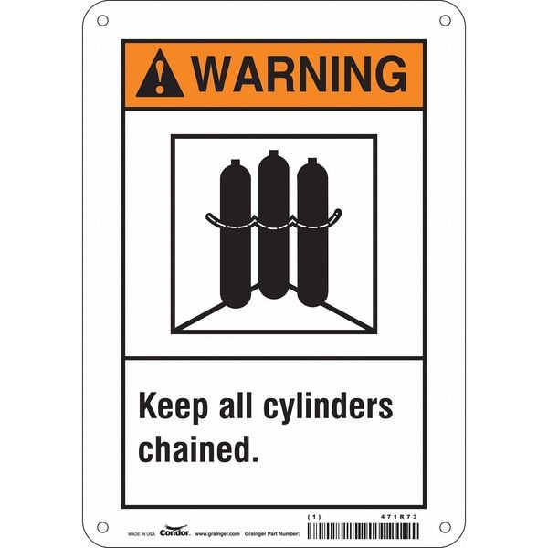 Safety Sign, Horizontal Rectangle, Number of Printed Sides 1, English, Sign Format ANSI/OSHA Format, Sign Legend Keep All Cylinders Chained., Sign Legend Background Color White, Sign Legend Style Symbol and Text