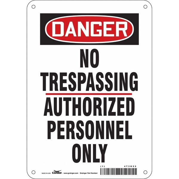 Safety Sign, Horizontal Rectangle, Number of Printed Sides 1, English, Sign Format Traditional OSHA, Sign Legend No Trespassing Authorized Personnel Only, Sign Legend Background Color White, Sign Legend Style Text