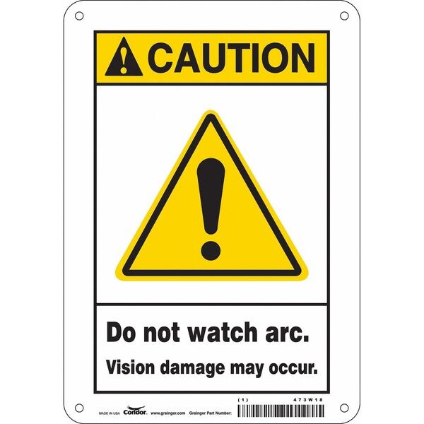 Safety Sign, Horizontal Rectangle, Number of Printed Sides 1, English, Sign Format ANSI/OSHA Format, Sign Legend Do Not Watch Arc. Vision Damage May Occur., Sign Legend Background Color White, Sign Legend Style Symbol and Text