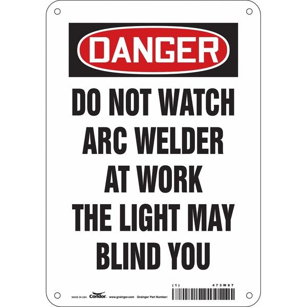 Safety Sign, Horizontal Rectangle, Number of Printed Sides 1, English, Sign Format Traditional OSHA, Sign Legend Do Not Watch Arc Welder At Work The Light May Blind You, Sign Legend Background Color White, Sign Legend Style Text