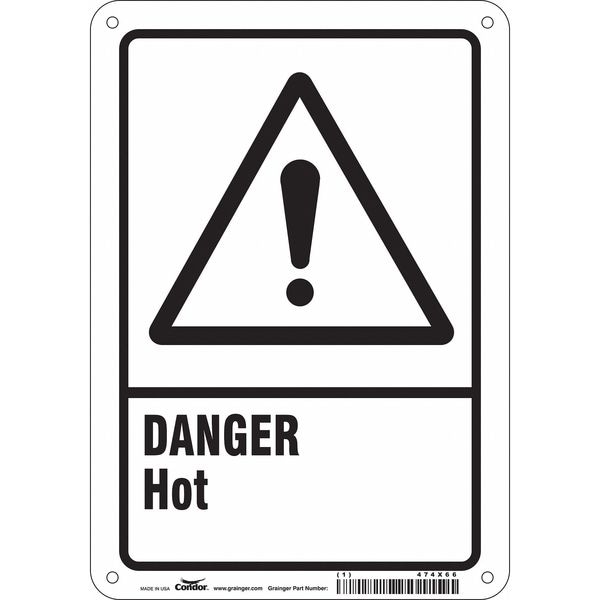 Safety Sign, Horizontal Rectangle, Number of Printed Sides 1, English, Sign Format Other Format, Sign Legend Danger Hot, Sign Legend Background Color White, Sign Legend Style Symbol and Text