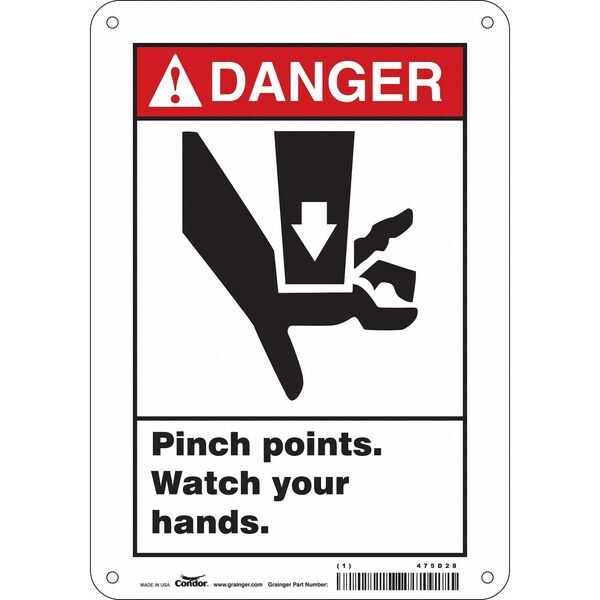 Safety Sign, Horizontal Rectangle, Number of Printed Sides 1, English, Sign Format ANSI/OSHA Format, Sign Legend Pinch Points. Watch Your Hands., Sign Legend Background Color White, Sign Legend Style Symbol and Text