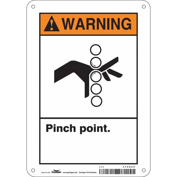 Safety Sign, Horizontal Rectangle, Number of Printed Sides 1, English, Sign Format ANSI/OSHA Format, Sign Legend Pinch Point., Sign Legend Background Color White, Sign Legend Style Symbol and Text