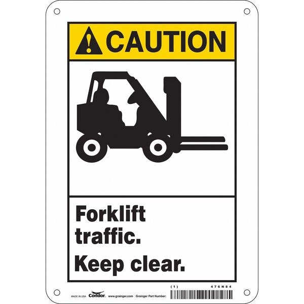 Safety Sign, Horizontal Rectangle, Number of Printed Sides 1, English, Sign Format ANSI/OSHA Format, Sign Legend Forklift Traffic. Keep Clear., Sign Legend Background Color White, Sign Legend Style Symbol and Text