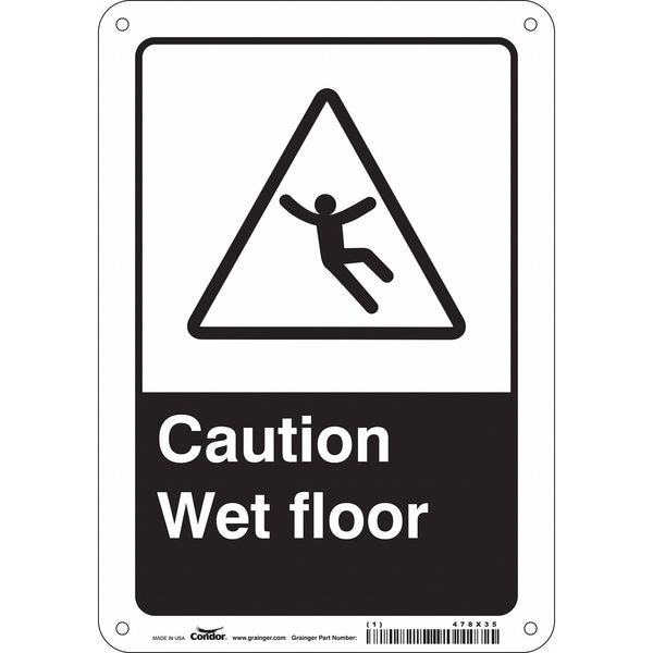 Safety Sign, Horizontal Rectangle, Number of Printed Sides 1, English, Sign Format Other Format, Sign Legend Caution Wet Floor, Sign Legend Background Color Black, White, Sign Legend Style Symbol and Text