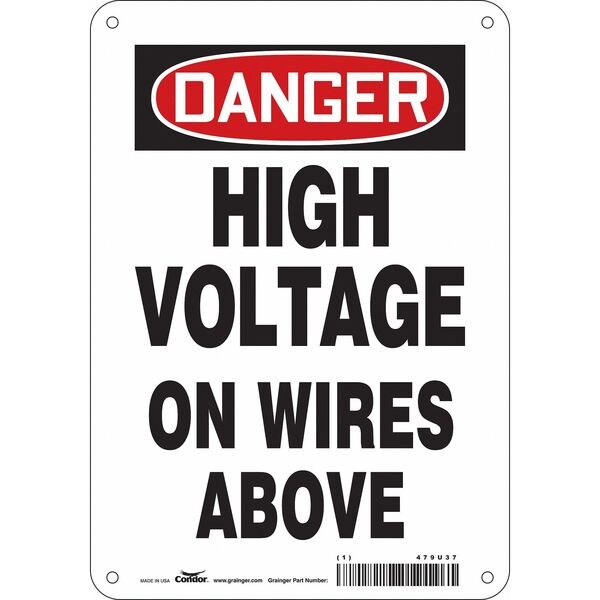 Safety Sign, Horizontal Rectangle, Number of Printed Sides 1, English, Sign Format Traditional OSHA, Sign Legend High Voltage On Wires Above, Sign Legend Background Color White, Sign Legend Style Text
