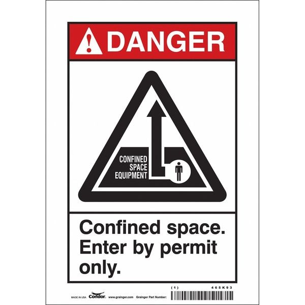 Safety Sign, Horizontal Rectangle, Number of Printed Sides 1, English, Sign Format ANSI/OSHA Format, Sign Legend Confined Space. Enter By Permit Only., Sign Legend Background Color White, Sign Legend Style Symbol and Text