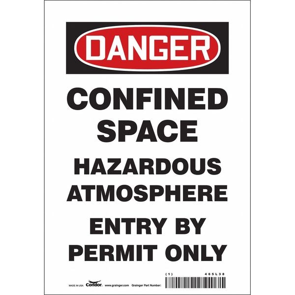 Safety Sign, Horizontal Rectangle, Number of Printed Sides 1, English, Sign Format Traditional OSHA, Sign Legend Confined Space Hazardous Atmosphere Entry By Permit Only, Sign Legend Background Color White, Sign Legend Style Text