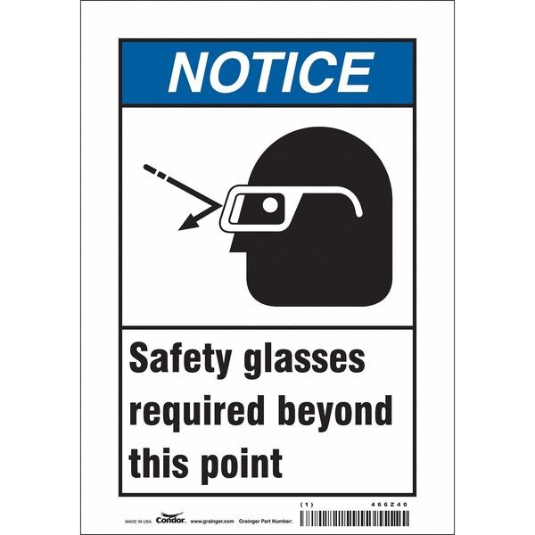 Safety Sign, Horizontal Rectangle, Number of Printed Sides 1, English, Sign Format ANSI/OSHA Format, Sign Legend Safety Glasses Required Beyond This Point, Sign Legend Background Color White, Sign Legend Style Symbol and Text