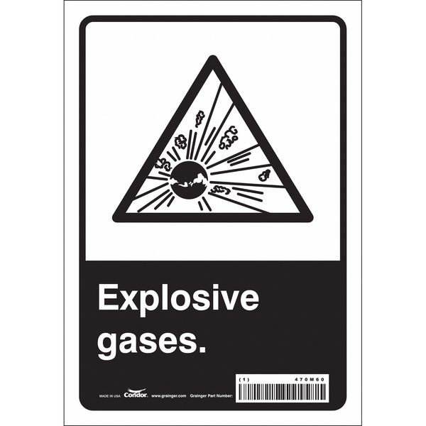 Safety Sign, Horizontal Rectangle, Number of Printed Sides 1, English, Sign Format Other Format, Sign Legend Explosive Gases., Sign Legend Background Color Black; White, Sign Legend Style Symbol and Text