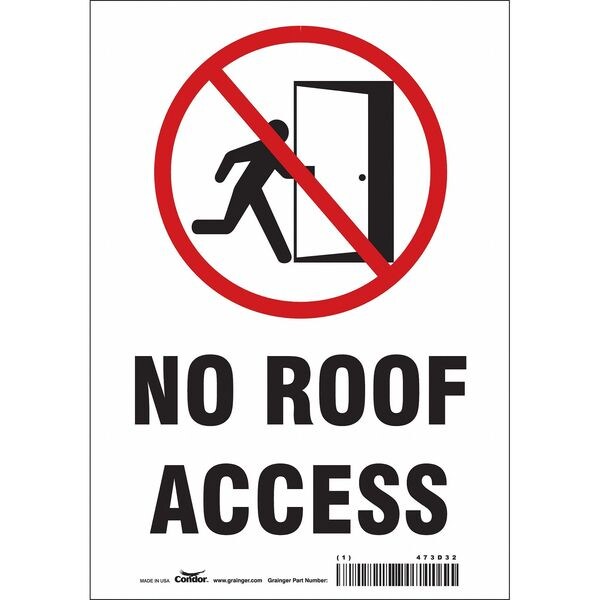 Safety Sign, Horizontal Rectangle, Number of Printed Sides 1, English, Sign Format Other Format, Sign Legend No Roof Access, Sign Legend Background Color White, Sign Legend Style Symbol and Text
