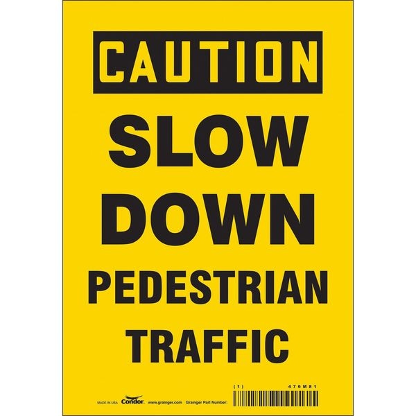 Safety Sign, Horizontal Rectangle, Number of Printed Sides 1, English, Sign Format Traditional OSHA, Sign Legend Slow Down Pedestrian Traffic, Sign Legend Background Color Yellow, Sign Legend Style Text