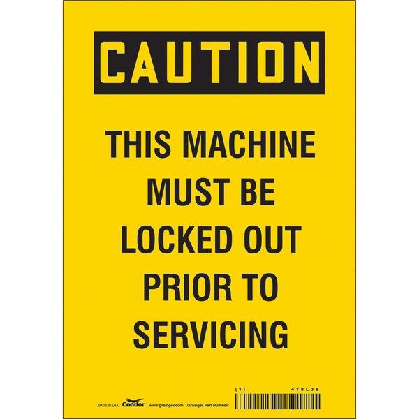 Safety Sign, Horizontal Rectangle, Number of Printed Sides 1, English, Sign Format Traditional OSHA, Sign Legend This Machine Must Be Locked Out Prior To Servicing, Sign Legend Background Color Yellow, Sign Legend Style Text