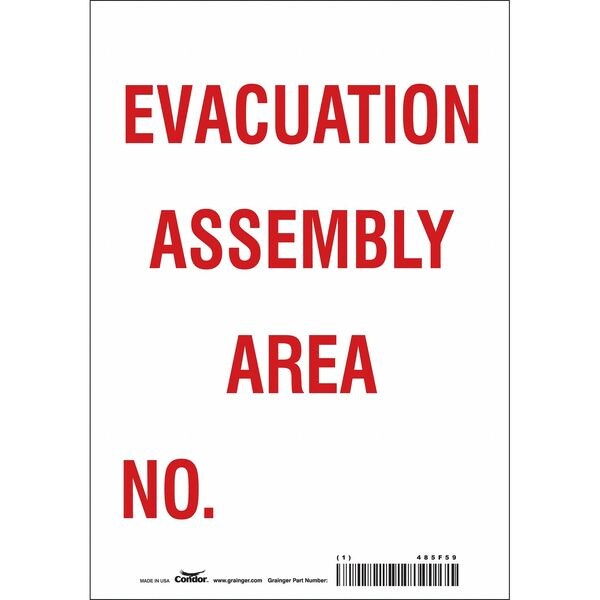 Safety Sign, Horizontal Rectangle, Number of Printed Sides 1, English, Sign Format Other Format, Sign Legend Evacuation Assembly Area No., Sign Legend Background Color White, Sign Legend Style Text