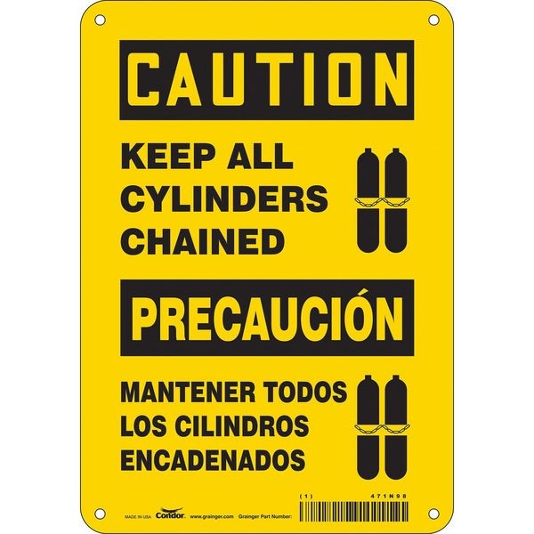 Safety Sign, Horizontal Rectangle, Number of Printed Sides 1, English, Spanish, Sign Format Traditional OSHA, Sign Legend Keep All Cylinders Chained/Mantener Todos Los Cilindros Encadenados, Sign Legend Background Color Yellow, Sign Legend Style Symbol and Text
