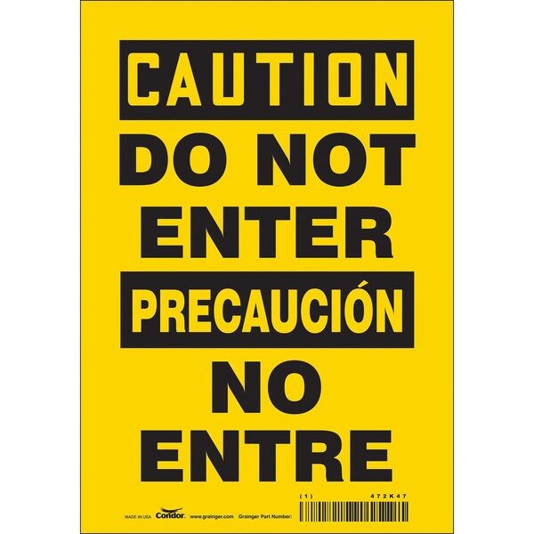 Safety Sign, 10 in Height, 7 in Width, Vinyl, Horizontal Rectangle, English, Spanish, 472K47