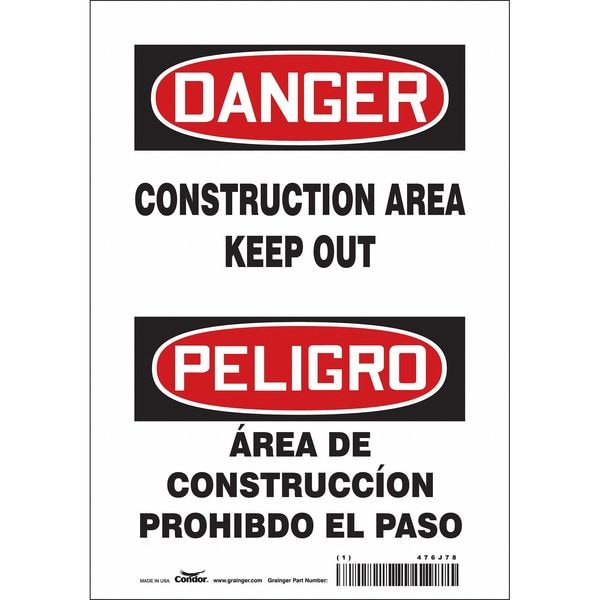 Safety Sign, Horizontal Rectangle, Number of Printed Sides 1, English, Spanish, Sign Format Traditional OSHA, Sign Legend Construction Area Keep Out/Area De Construccion Prohibido El Paso, Sign Legend Background Color White, Sign Legend Style Text