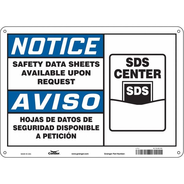 Safety Sign, Horizontal Rectangle, Number of Printed Sides 1, English, Spanish, Sign Format Traditional OSHA, Sign Legend Safety Data Sheets Available Upon Request/Hojas De Seguridad De Material Disponible A Peticion, Sign Legend Background Color White, Sign Legend Style Symbol and Text