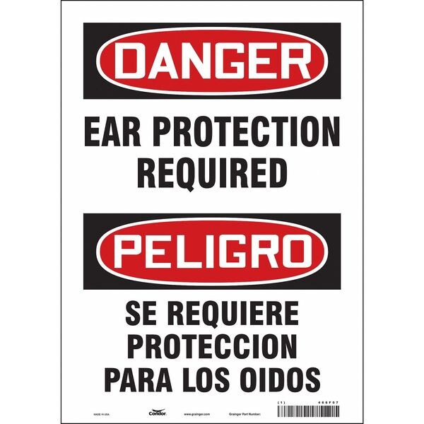 Safety Sign, Vertical Rectangle, Number of Printed Sides 1, English, Spanish, Sign Format Traditional OSHA, Sign Legend Ear Protection Required/Se Requiere Proteccion Para Los Oidos, Sign Legend Background Color White, Sign Legend Style Text