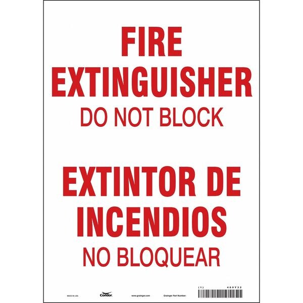 Safety Sign, Vertical Rectangle, Number of Printed Sides 1, English, Spanish, Sign Legend Fire Extinguisher Do Not Block/Extintor De Incendios No Bloquear, Sign Legend Background Color White, Sign Legend Style Text