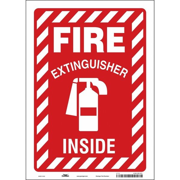 Safety Sign, Vertical Rectangle, Number of Printed Sides 1, English, Sign Legend Fire Extinguisher Inside, Sign Legend Background Color Red, White, Sign Legend Style Symbol and Text