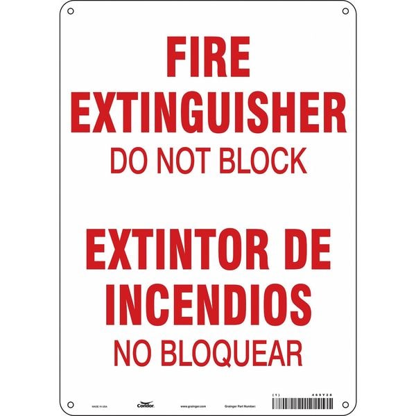 Safety Sign, Vertical Rectangle, Number of Printed Sides 1, English, Spanish, Sign Format Other Format, Sign Legend Fire Extinguisher Do Not Block/Extintor De Incendios No Bloquear, Sign Legend Background Color White, Sign Legend Style Text