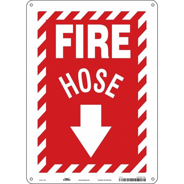 Safety Sign, Vertical Rectangle, Number of Printed Sides 1, English, Sign Format Other Format, Sign Legend Fire Hose, Sign Legend Background Color Red, White, Sign Legend Style Symbol and Text